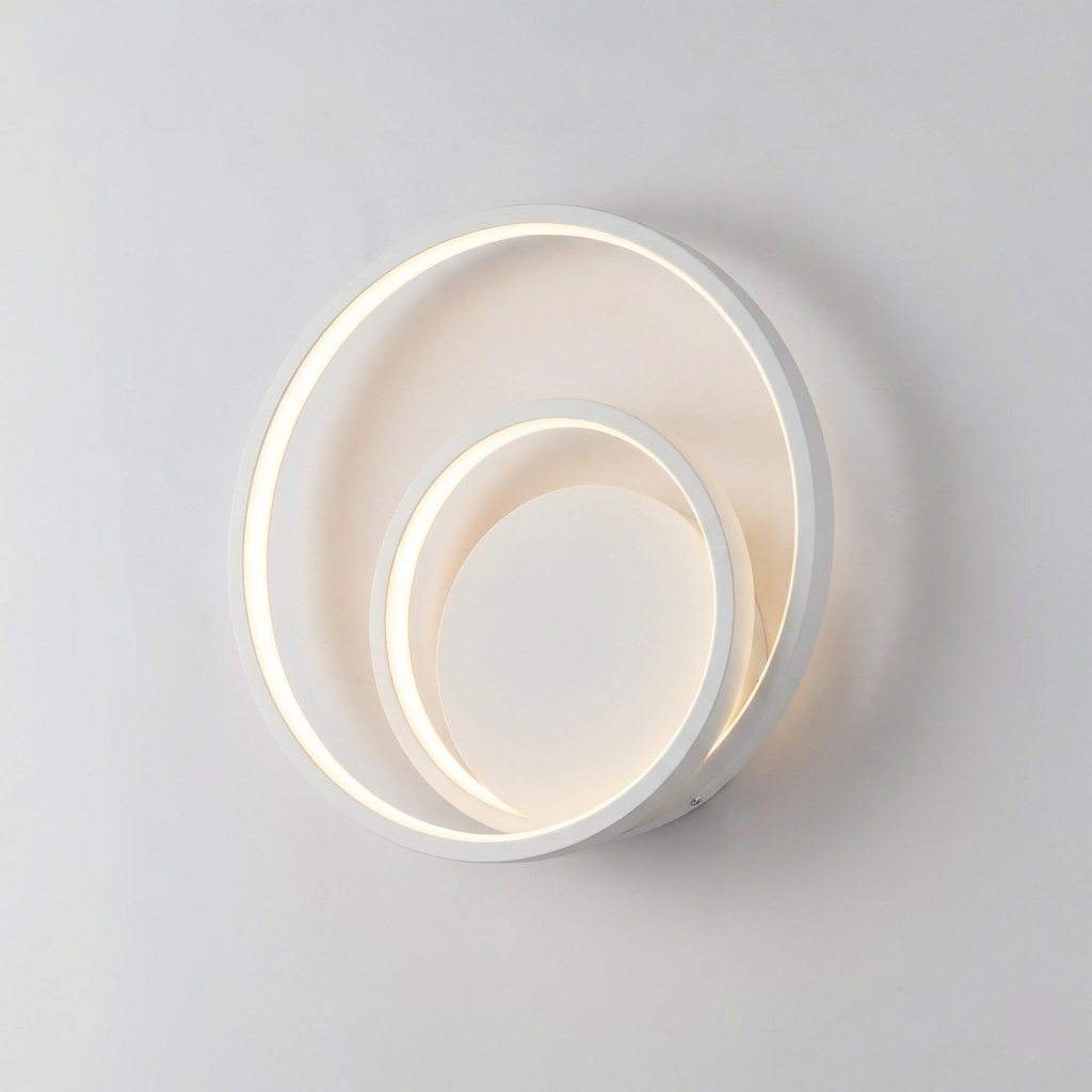 Trois finitions soigneusement sélectionnées s’offrent à vous : le blanc pur pour une intégration discrète et épurée, l’or pour apporter une touche de luxe et de chaleur, ou le noir pour affirmer un style industriel-chic sophistiqué. Chaque finition sublime le relief des cercles imbriqués et transforme votre applique en véritable pièce décorative.