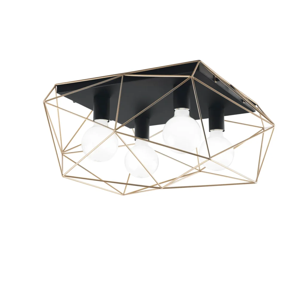 Plafonnier géométrique métal 4 lampes (Blanc / Noir-Or)