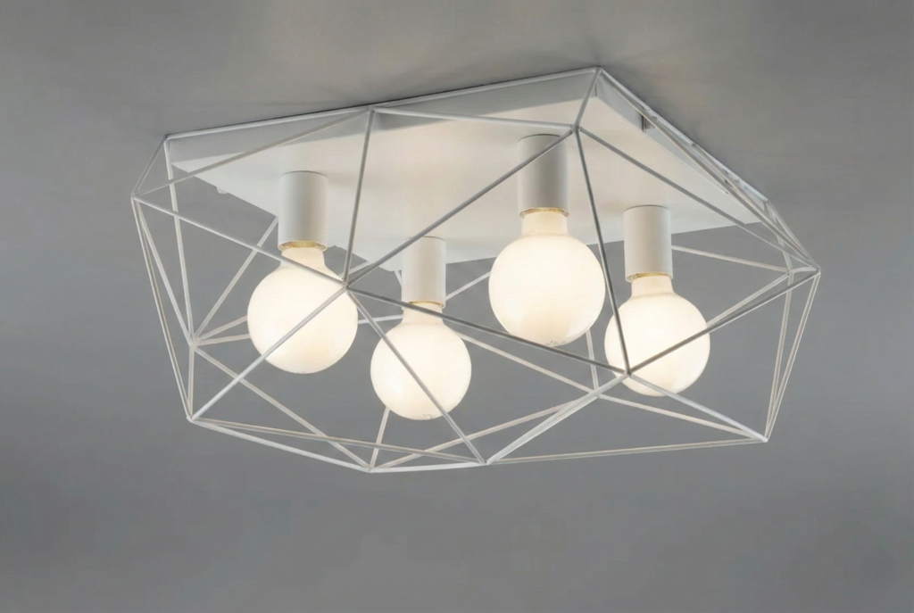 Soyez le premier à laisser votre avis sur “Plafonnier géométrique métal 4 lampes (Blanc / Noir-Or)”