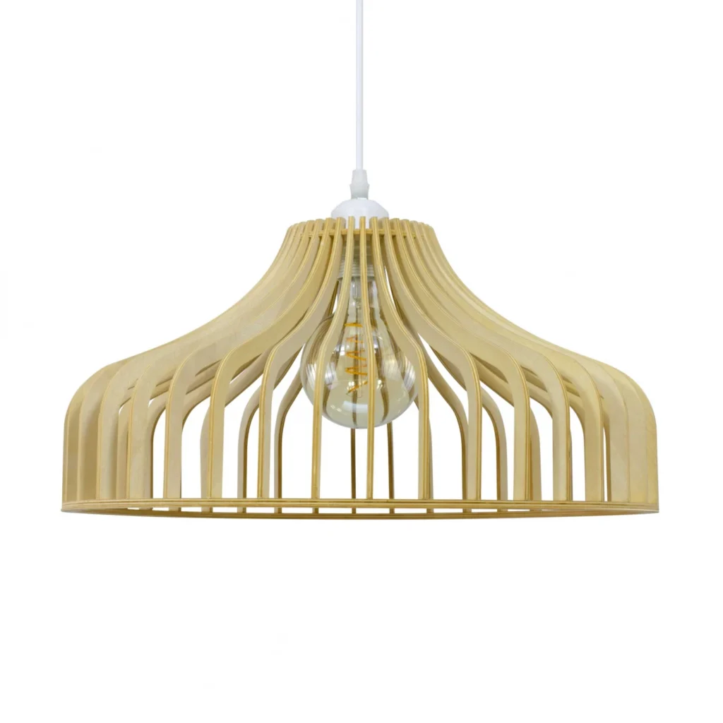 Avec la suspension bois Histone, Lumi-One fait le choix du bois de tilleul, une essence précieuse reconnue pour sa teinte claire et lumineuse, sa légèreté exceptionnelle et la finesse de son grain. Ses lamelles délicatement courbées épousent une forme ronde et généreuse d’un diamètre de 45 cm qui enveloppe l’espace d’un halo de douceur. La finition naturelle brute met en valeur chaque variation de teinte propre au tilleul — un matériau vivant dont les nuances légèrement différentes d’un exemplaire à l’autre sont autant de preuves d’authenticité.