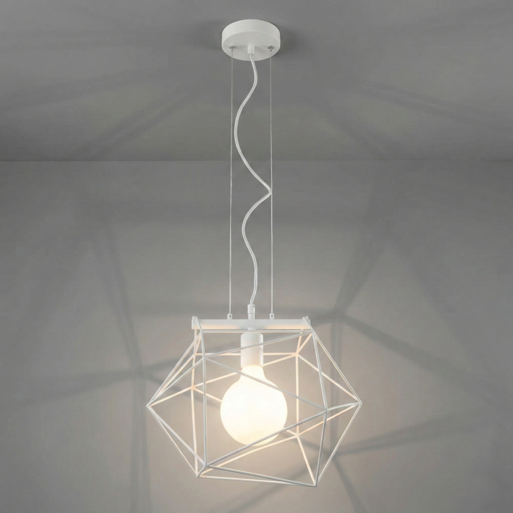 Suspension géométrique métal 1 ampoule (Blanc / Noir-Or)