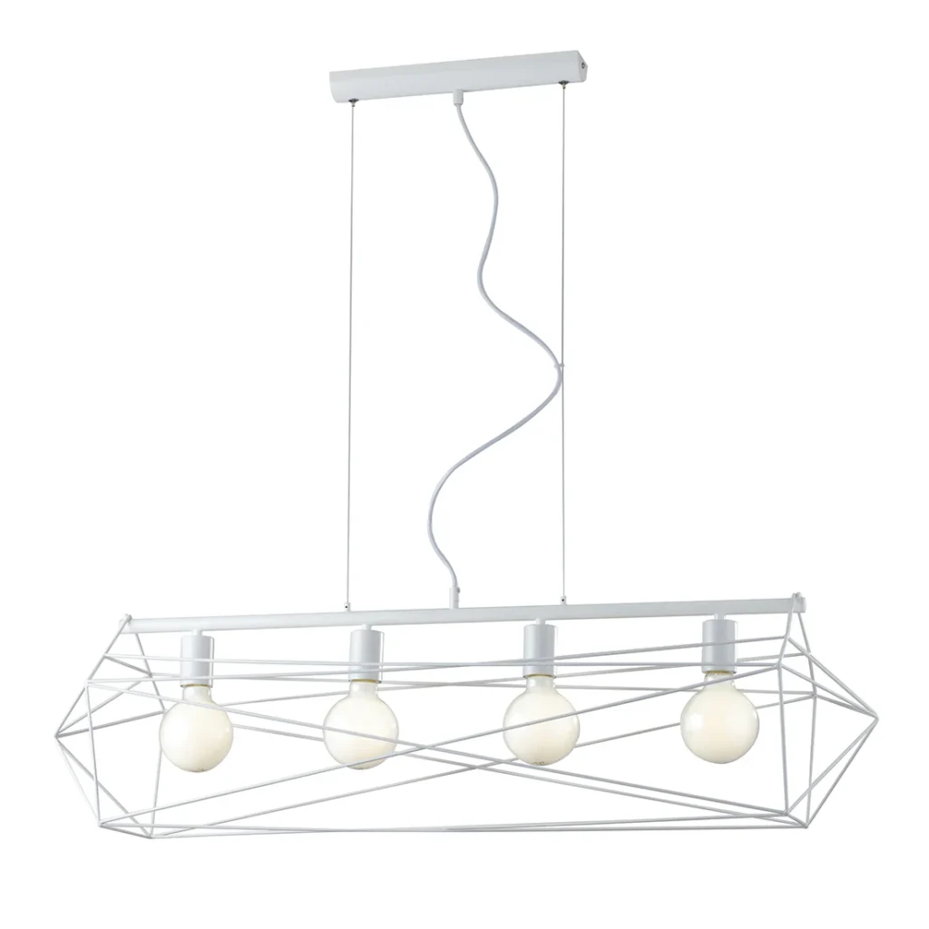 Véritable pièce maîtresse sculpturale, la suspension ABRAXAS 4 ampoules s’impose comme le point focal incontournable de vos grands espaces. Avec ses quatre points lumineux et son envergure généreuse de 106 cm, ce luminaire d’exception marie l’audace d’un design géométrique avant-gardiste à une puissance d’éclairage remarquable. Disponible en blanc mat ou noir et or, elle transforme votre table de salle à manger ou votre îlot de cuisine en véritable scène de vie.