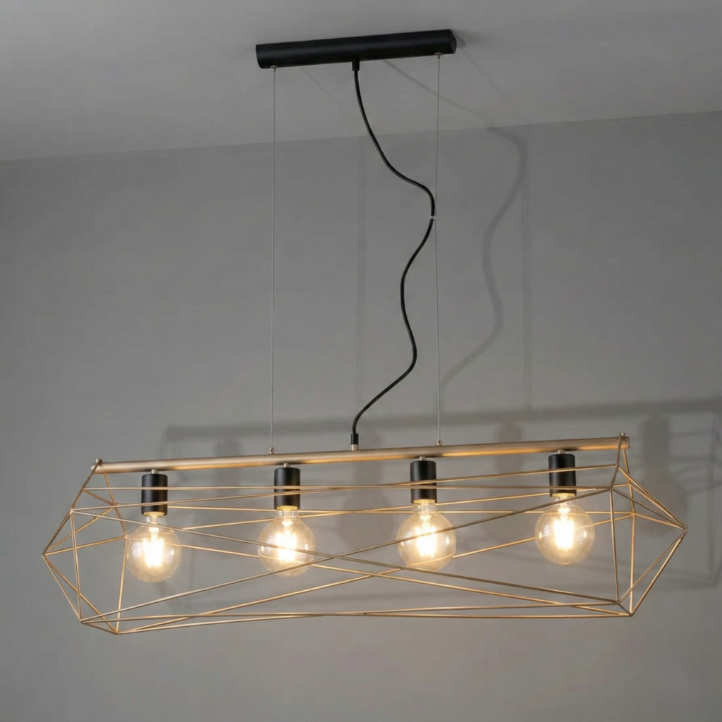 Suspension géométrique métal 4 ampoules (Blanc / Noir-Or)