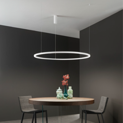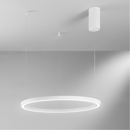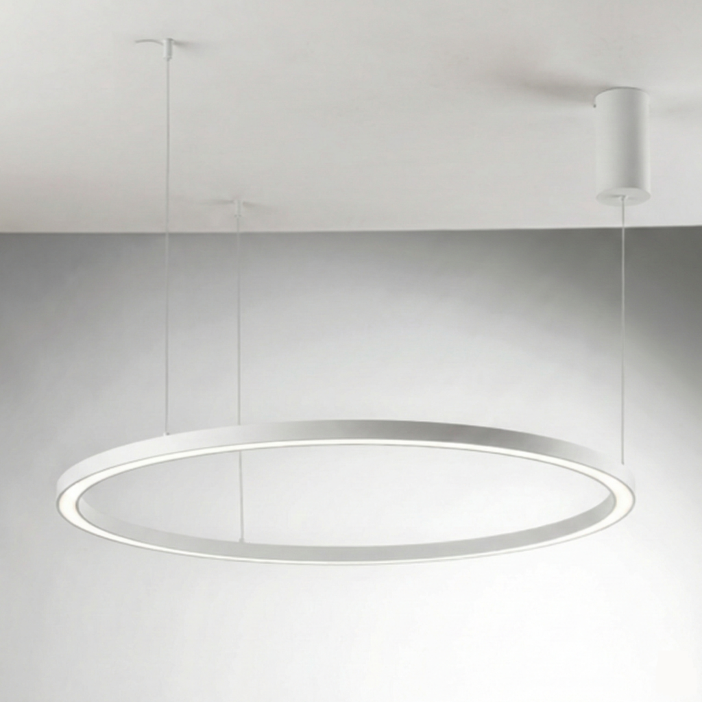 Suspension LED Hoop circulaire en aluminium gaufré. CCT réglable 3000-6500K. Ø60-80-120cm. Design minimaliste contemporain. Garantie 3 ans.