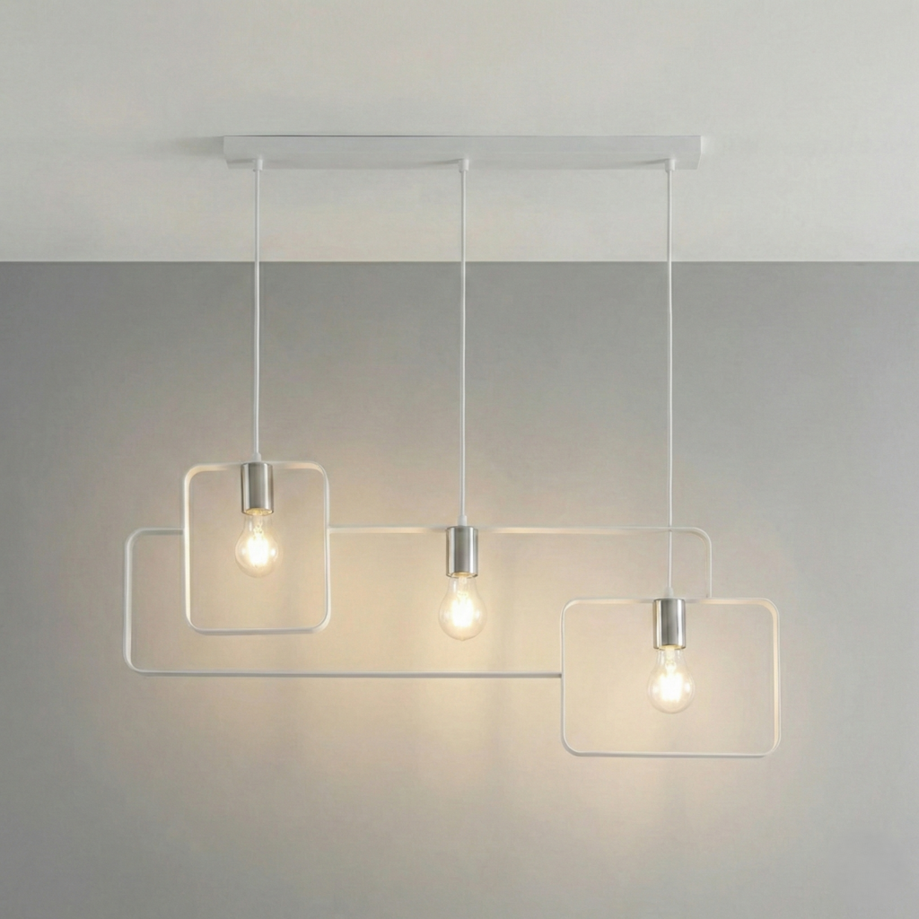 Suspension métal contemporaine 3 ampoules (Blanc / Noir)