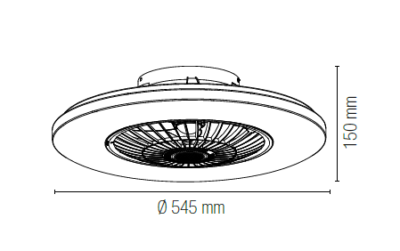 Le ventilateur de plafond lumineux Garbin se distingue par sa forme circulaire généreuse (diamètre 545 mm) dont le contour extérieur blanc forme un anneau lumineux parfaitement net, tandis que le cœur de l’appareil laisse apparaitre les 7 pales thermoplastiques transparentes disposées en spirale. Ce contraste entre la légèreté des pales et la masse blanche ou noire du boitier crée un effet visuel sophistiqué, à la fois industriel et contemporain.